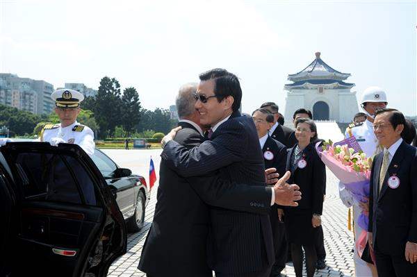 歡迎儀式上午10時在中正紀念堂自由廣場舉行,在鳴放21響禮炮、演奏兩國國歌及兩國元首檢閱三軍儀隊後,馬總統與湯安諾總統分別致詞。我中央政府首長及駐華使節團等也參加了歡迎儀式。