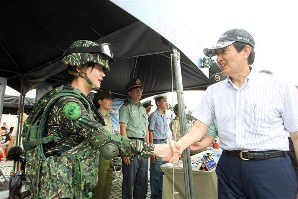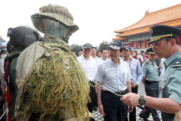 隨後,總統在國防部部長高華柱、參謀總長嚴明、政戰局長王明我、陸軍司令李翔宙、海軍司令董翔龍及Discovery頻道亞太電視網北亞區總經理林東民等人的陪同下,共同參觀特戰軍事體驗展,除慰勞現場國軍辛勞,並瞭解陸軍及海軍特戰部隊之各項裝備。