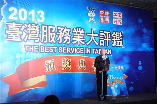吳敦義副總統下午出席工商時報主辦的「2013服務業大評鑑頒獎典禮」,除親頒金牌獎予6家得獎代表,並對服務業發展國家經濟、促進國際觀光的傑出貢獻,表達誠摯敬佩與感謝之意。