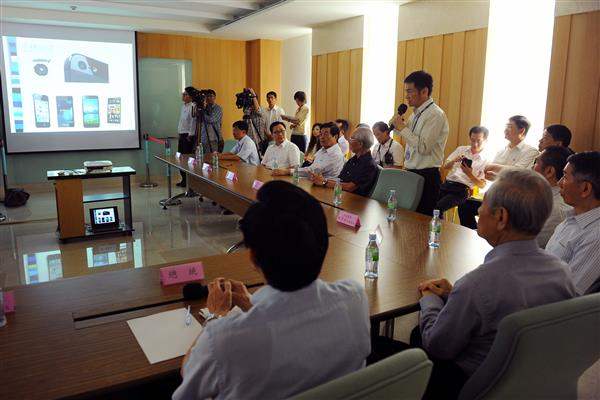 總統抵達後,首先由該公司集團董事長林耀英、執行長林恩平等陪同參觀鏡片射出成型、鍍膜及鏡頭組裝等生產線,並聽取林執行長簡報該公司之發展過程與面臨的問題,隨後由經濟部長張家祝、工業局長沈榮津及臺中市政府經濟發展局長王誕生逐一回應。