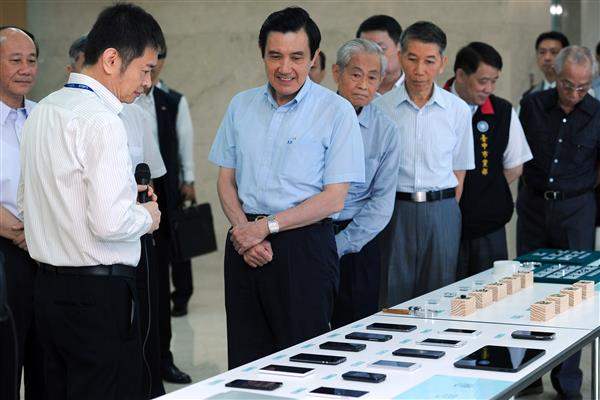 馬英九總統上午前往臺中市訪視「大立光電公司」,瞭解我國精密光學元件產業發展現況,並說明政府推動與鼓勵臺商回臺投資之政策立場。