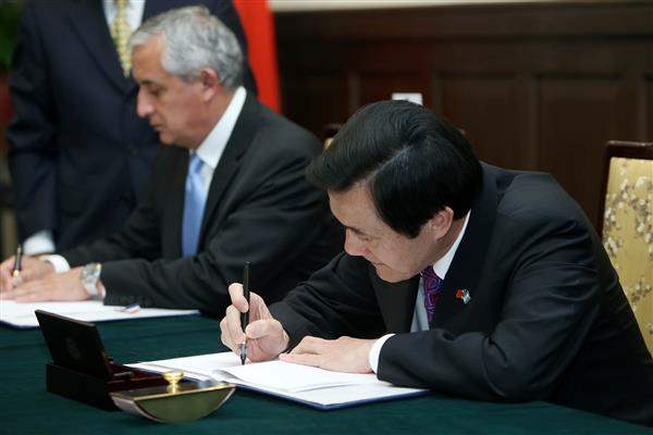 馬英九總統下午在總統府與瓜地馬拉共和國總統培瑞茲(Otto Perez Molina)簽署聯合聲明。