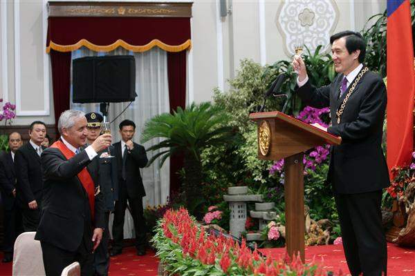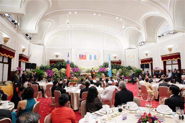 馬英九總統晚間在總統府以國宴款待瓜地馬拉共和國總統培瑞茲(Otto Perez Molina)伉儷暨訪問團成員。