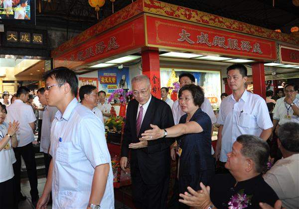 吳敦義副總統上午前往臺北木柵指南宮出席「孚佑帝君成道1133周年大典暨三獻大禮」。