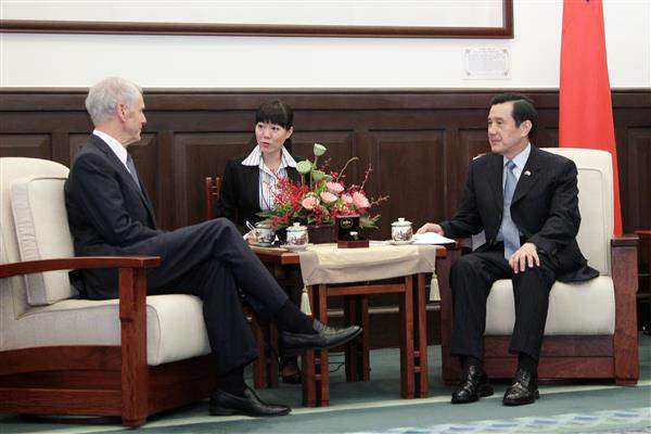 馬英九總統上午接見美國前商務部長、現任華府智庫「威爾遜國際學人中心」特聘資深政策學者布萊森(John Bryson),除歡迎訪賓來訪,並針對臺美關係、氣候變遷與能源政策等議題交換意見。