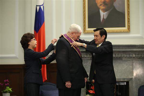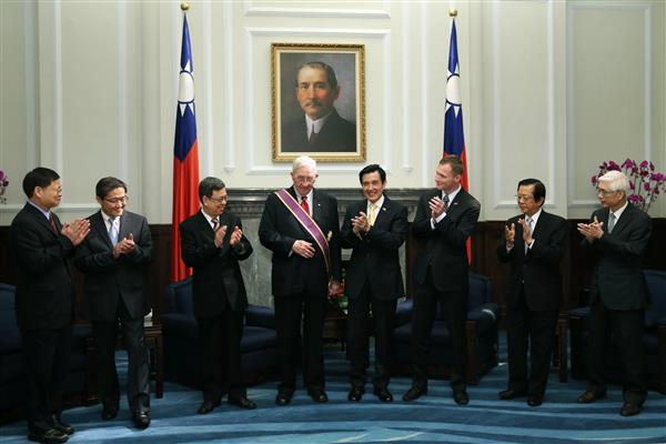 韓德森教授表示,今日獲蒙總統頒贈勳章,渠深感無上榮耀,並感謝臺灣政府官員及人民之肯定。