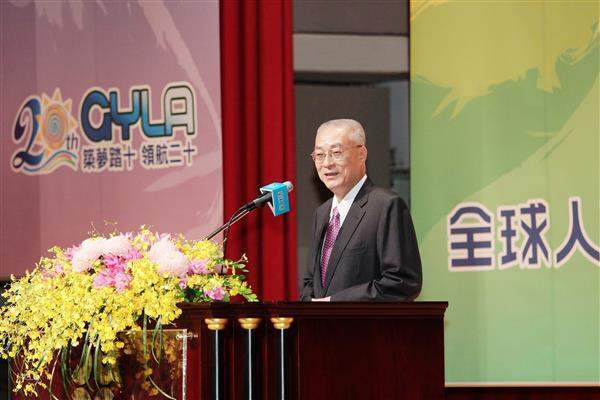 吳敦義副總統上午出席由全球人壽與旺旺中時媒體集團工商時報所共同主辦的「第20屆未來領袖菁英養成學苑(GYLA,Generation Young Leadership Academy)-2013大專院校夏季高峰論壇」,除祝賀「GYLA」活動十年創辦有成,並期勉青年學子築夢踏實,未來必能成功在望。