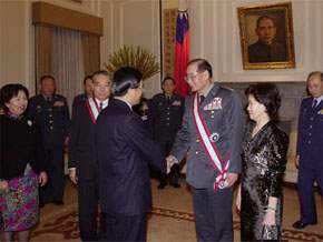總統贈勳國防部長伍世文及參謀總長湯曜明