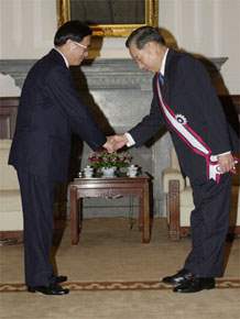 陳總統水扁先生今天頒贈青天白日勳章給即將卸任的國防部長伍世文及參謀總長湯曜明,以表彰他們落實國防二法、改造國防組織及強化兵力結構、積極整軍備戰所做的付出與貢獻。
