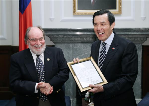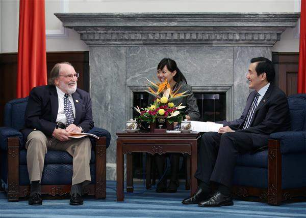 訪賓一行由「美國在臺協會」(AIT)臺北辦事處處長馬啟思(Christopher Marut)陪同,前來總統府晉見總統,國家安全會議秘書長袁健生及外交部次長石定也在座。