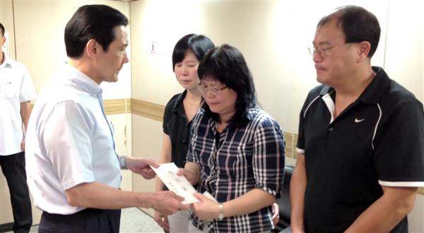 蘇力颱風襲臺,新北市政府警察局淡水分局中正路派出所員警陳錦榮下班途中意外身亡,馬英九總統上午在內政部警政署長王卓鈞陪同下專程前往探視家屬,除表達深摯慰問之意,瞭解意外發生過程,並表示政府將全力協助後續喪葬撫卹事宜。