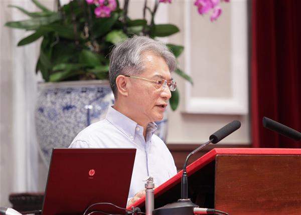 總統府上午舉行總統府月會,馬英九總統親臨主持,月會邀請「工業技術研究院」董事長蔡清彥以「從創新型經濟思維看臺灣高科技產業轉型」為題發表專題報告。