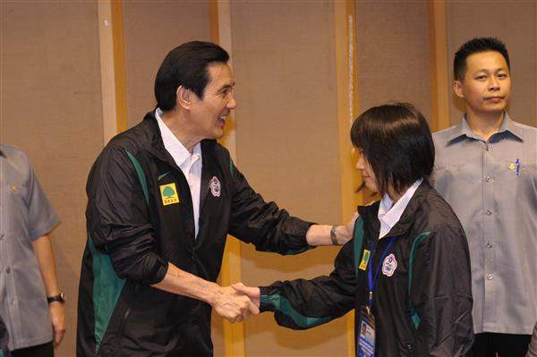 總統進一步指出,2009年的臺北聽奧,臺灣代表團獲得11金11銀11銅,參賽成績高居獎牌榜第5名,遙遙領先歐美運動強國,值得肯定。此外,上屆賽事的選手包括桌球的溫智璇、網球的何秋美及保齡球的張堯茜等人,今年也都將再度參賽,相信渠等在歷經4年的淬礪後,競技實力定更為精進,必能再為我國締造更輝煌的紀錄。