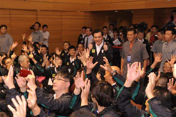 馬英九總統下午出席「2013年索菲亞聽障達福林匹克運動會」我國代表團授旗典禮,以手語為選手們加油打氣,並預祝彼等締造佳績為國爭光,凱旋歸國。