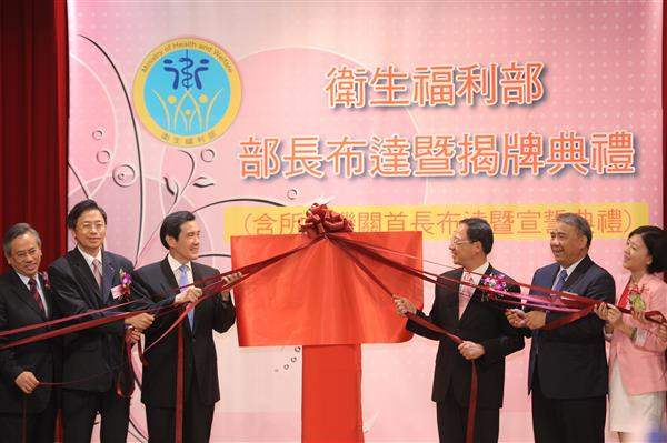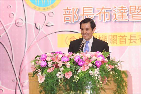 馬英九總統上午出席衛生福利部揭牌暨部長布達典禮,期許該部同仁凝聚團隊共識,建立臺灣「人人為我、我為人人」的衛生福利制度。