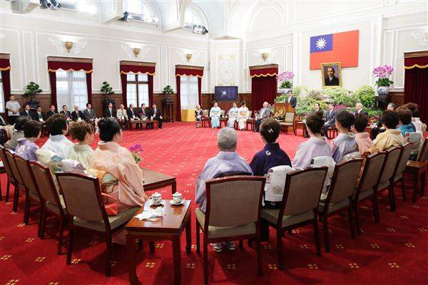 訪賓一行由「日本媽祖會」會長曾鳳蘭率領、僑務委員會副委員長呂元榮及亞東關係協會會長李嘉進陪同,前來總統府晉見總統,總統府副秘書長熊光華及立法委員羅明才也在座。