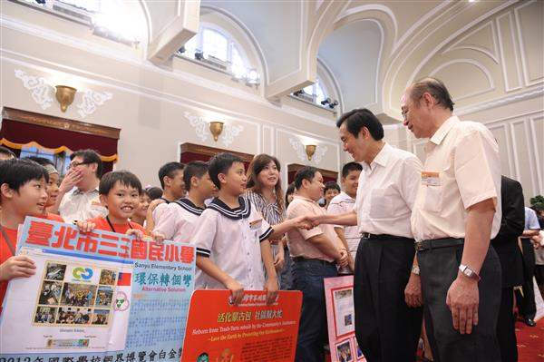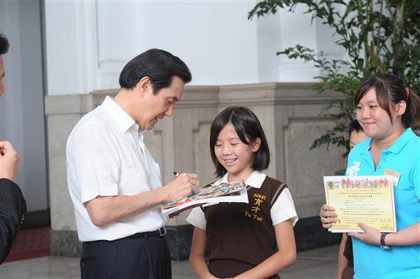 馬英九總統下午接見參加「2013國際學校網界博覽會」網頁比賽優勝隊伍師生代表一行,對獲獎同學的傑出表現及指導老師們的用心與栽培,表達嘉勉與肯定之意,並期許獲獎同學持續發揮臺灣的軟實力。