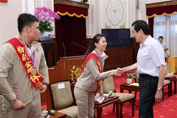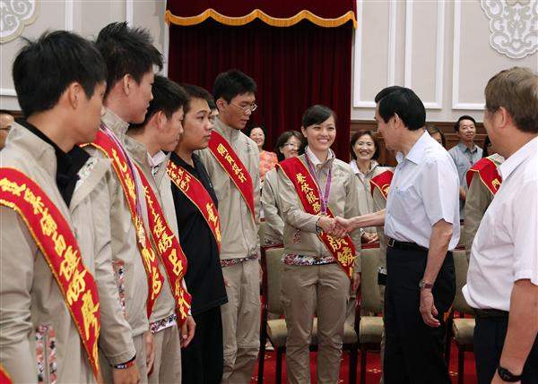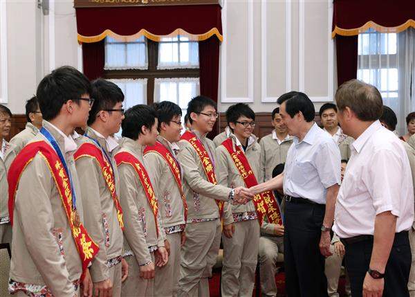 馬英九總統下午在總統府接見「第42屆國際技能競賽」我國代表團,對團員獲得佳績、為國爭光的傑出貢獻,表達高度肯定與感謝之意。