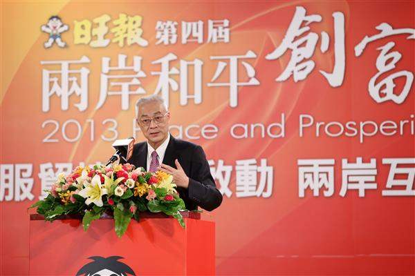 吳敦義副總統上午出席「2013第4屆《旺報》兩岸和平創富論壇」,期盼持續改善兩岸關係,並珍惜目前穩定和平發展狀態,共創互利無限商機。