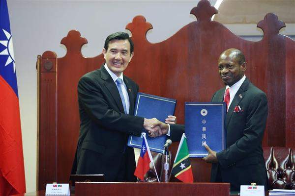 馬英九總統閣下應道格拉斯總理閣下邀請於2013年8月18日至19日率團訪問聖克里斯多福及尼維斯期間,雙方曾就世界情勢及兩國關切事項廣泛充分交換意見。