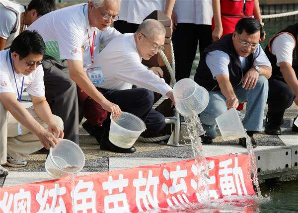 副總統出席「總統魚」魚苗放流活動暨「2013日月潭國際萬人泳渡」