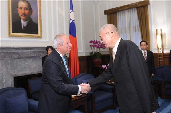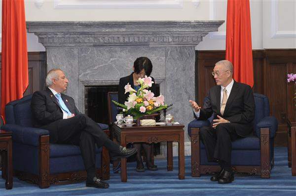 吳敦義副總統上午接見薩爾瓦多共和國國會議長雷耶斯(Sigfrido Reyes)一行,除表達誠摯歡迎之意,並盼兩國能締造更緊密的情誼。