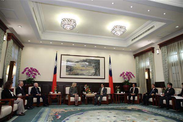 馬英九總統上午接見「總統您好!中華民國與美元首外交影像暨文物特展」美國訪華團一行,除肯定美國前總統艾森豪(Dwight David Eisenhower)對臺之貢獻,並說明臺灣今年獲邀參加「國際民航組織」(ICAO)大會之外交成果。