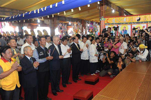 吳敦義副總統上午前往雲林北港朝天宮出席「2013年世界媽祖會北港」活動,由朝天宮董事長蔡咏鍀陪同,見證4,643尊神像齊聚之金氏世界紀錄,並祈求國泰民安、風調雨順。