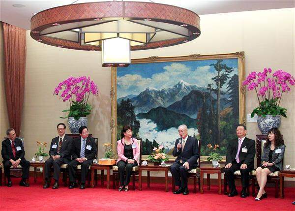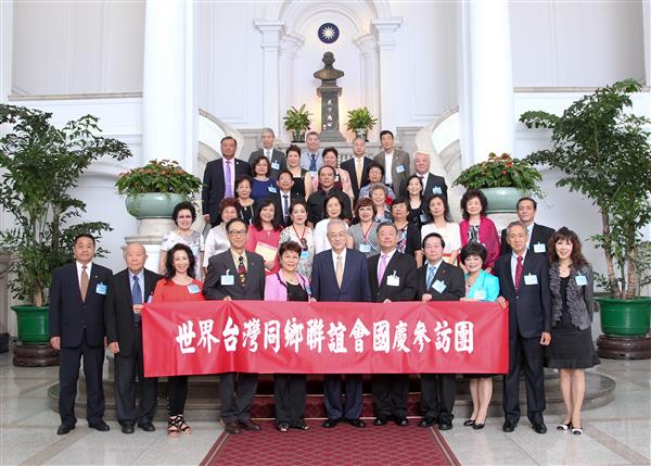 吳敦義副總統上午接見「世界臺灣同鄉聯誼總會」回國參訪團,代表政府與人民歡迎訪賓回國,除肯定與會者堅定支持政府,並期勉渠等持續團結一心,為服務僑社及傳承中華文化奉獻心力。