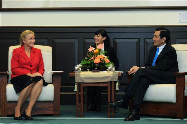 馬英九總統上午接見「世界核能協會」(World Nuclear Association)秘書長阿格尼塔.瑞新(Agneta Rising)等一行,與訪賓就核能及再生能源發展議題廣泛交換意見。