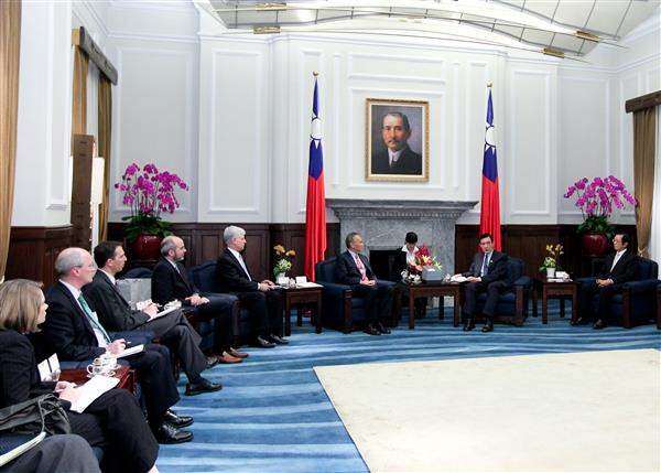 訪賓由「美國在臺協會」臺北辦事處處長馬啟思(Christopher Marut)陪同,前來總統府晉見總統,總統府秘書長楊進添、國家安全會議副秘書長張大同及外交部次長史亞平也在座。