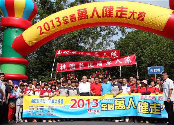 副總統說,今天這場盛會,有來自全國各地超過3萬名的民眾報名參與,值此秋高氣爽之際,大家在風景優美、人情敦厚的南投一起健走,一定都能「走出健康」、「走出快樂」。