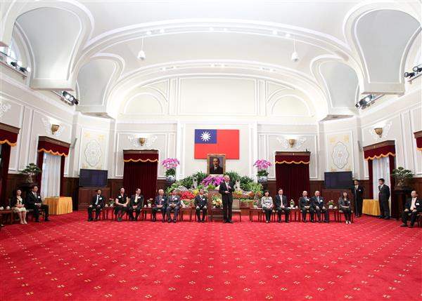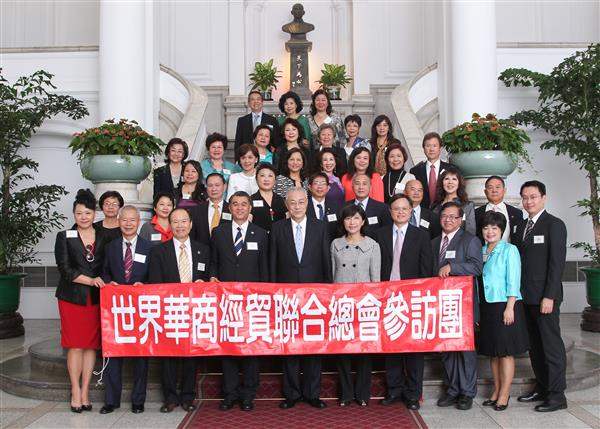 吳敦義副總統下午接見「世界華商經貿聯合總會」代表團,對訪賓長期在世界各地為國爭光的傑出貢獻,表達誠摯肯定與感謝之意。