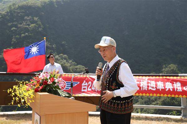 副總統抵達通車典禮會場後,首先聽取交通部公路總局長吳盟分簡報工程緣由及觀看橋樑重建施工紀錄片,並於致詞時表示,莫拉克風災發生後,造成全臺共有40多座重大危險橋樑,原先預估須耗時6年完成重建,但在交通部積極努力下,不到2年即完工,深值嘉許。