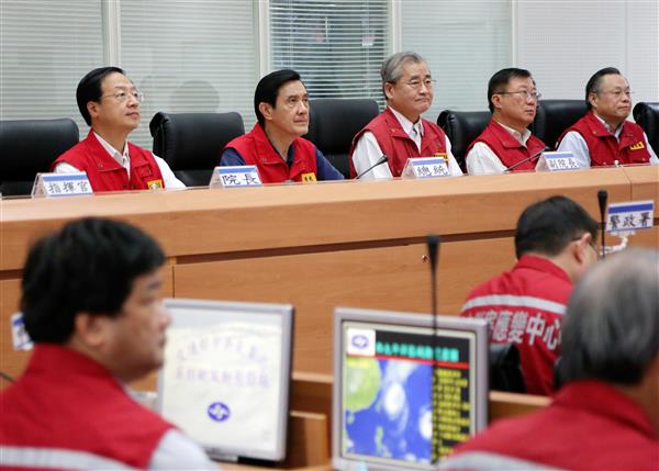 因應菲特颱風來襲,馬英九總統下午前往中央災害應變中心視察,瞭解各級政府防救災準備工作,並呼籲國人應提高警覺、隨時防救。