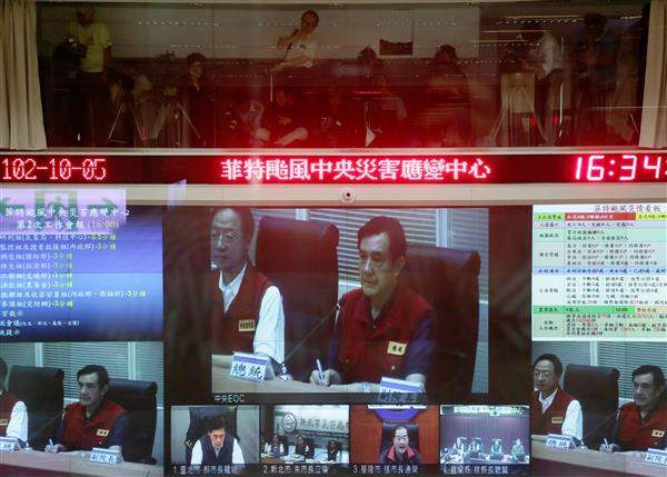 總統抵達後首先聽取中央氣象局、國家災害防救科技中心、內政部、國防部、經濟部、交通部、行政院農業委員會及災害防救辦公室等單位防颱簡報。由於菲特颱風對北部區域影響較大,因此總統也分別與臺北市、新北市、基隆市及宜蘭縣等四縣市首長視訊連線,瞭解各地防救災情形,並指示中央各部會適時提供必要支援與協助。