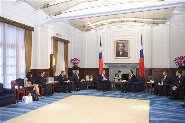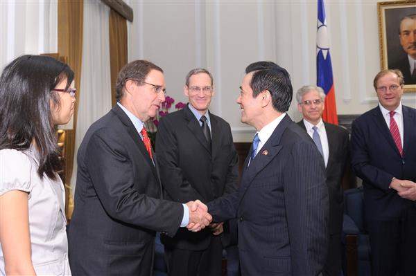 馬英九總統上午接見美國智庫「大西洋理事會」(Atlantic Council)訪華團,除闡述5年多來政府在臺美、兩岸及國際關係之具體進展,並重申我方將持續以和平方式解決國際爭端、以國際合作方式增進經貿關係。