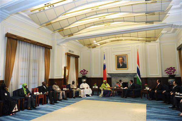 訪賓一行由甘國駐華大使賈掬(Alhagie Ebrima N.H. Jarjou)陪同,前來總統府晉見總統,總統府秘書長楊進添、國家安全會議諮詢委員甘逸驊及外交部次長柯森耀也在座。