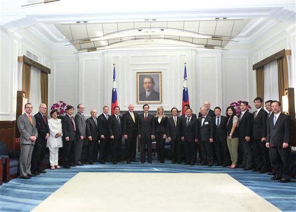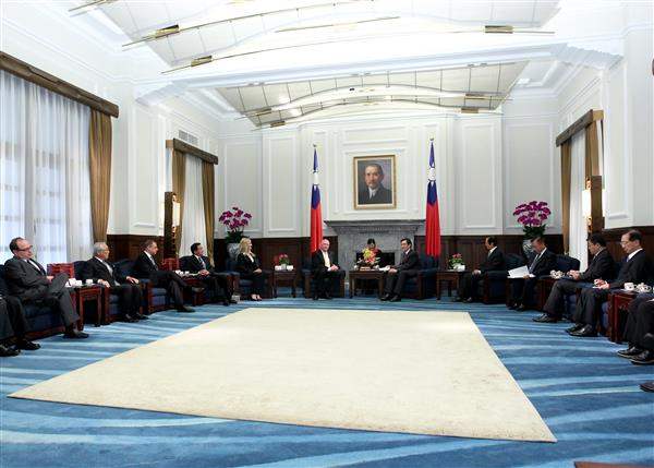 訪賓一行包括美國前聯邦眾議員柏頓(Dan Burton)伉儷、「戰略暨預算評估中心」副會長湯瑪士(Jim Thomas)、「美國企業研究院」亞洲研究主任卜大年(Dan Blumenthal)、「美國企業研究院」駐院學者暨高等戰略研究計畫主任施密特(Gary Schmitt)、「美臺商業協會」會長韓儒伯(Rupert J. Hammond-Chambers)、「國家亞洲研究局」能源安全計畫主任賀柏格(Mikkal Herberg)、日本眾議員長島昭久(Akihisa Nagashima)、「東京財團」理事長秋山昌廣(Akiyama Masahiro)、「慶應大學」教授渡邊頼純(Watanabe Yorizumi)、「澳洲國立大學」國家安全學院教授魏斯理(Michael Welsley)、「印度國防研析研究所」研究員戴德娃(Shebonti Ray Dadwal)及「中華民國高等政策研究協會」秘書長丁樹範等,由外交部次長石定及「亞東關係協會」秘書長羅坤燦陪同,前來總統府晉見總統,總統府秘書長楊進添及國家安全會議副秘書長張大同也在座。