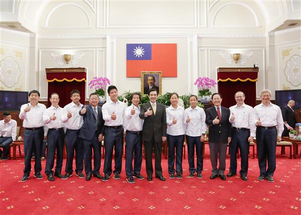 馬英九總統上午接見「2013年第六屆天津東亞運動會」我國奪牌選手及代表團工作人員,對參賽選手及教練們創下歷屆最佳成績載譽歸國,表達祝賀之意。