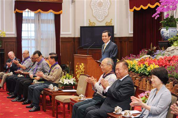總統也談到,他於2008年當選總統後,「中華民國童軍總會」前理事長趙守博特別邀請他擔任該會會長,當時他毫不猶豫地接下這份深具意義的工作,且於2011年3月參與該會創始一百年的慶祝大會,看見童子軍們個個訓練有素,令人倍感欣慰;此外,同年7月他也為我國參與「2011年瑞典世界童軍大露營」的童軍代表團授旗,而渠等亦不負眾望,榮獲佳績,殊值肯定。