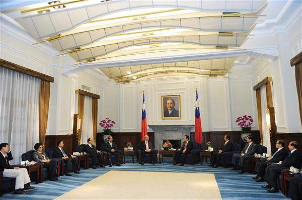 馬英九總統下午接見「第九屆兩岸經貿文化論壇」我方代表團,除肯定該論壇多年來協助兩岸交流的重要貢獻,並盼訪團此行傳達政府相關理念,持續擴大及深化雙方關係。