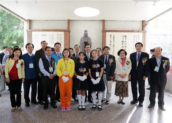 總統於抵達後,首先參觀該校碑牆及書法藝廊等設施,繼而觀看學生練習書法之狀況,並於致詞時表示,校方運用許多有效及巧妙的方法,成功推廣書法教育,鼓勵學生練習書法,而這些學生的書法技巧亦相當純熟,相信渠等未來將能持之以恆,繼續練習該項技藝。