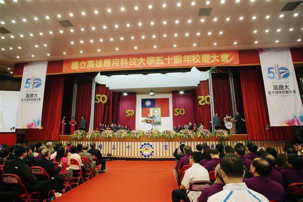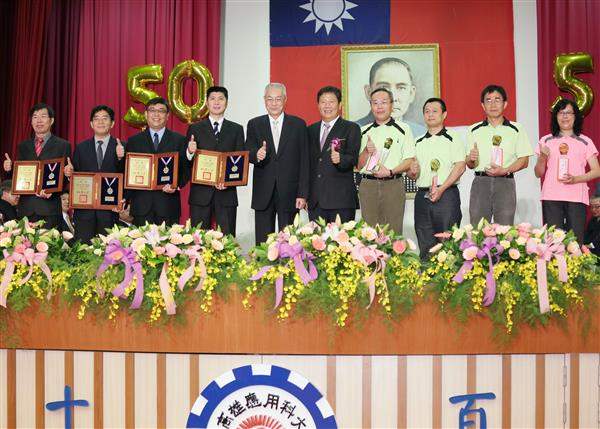 吳敦義副總統上午南下高雄市出席「高雄應用科技大學」50周年校慶,慶賀該校五十歲生日快樂,並頒獎予該校優良教職員工。