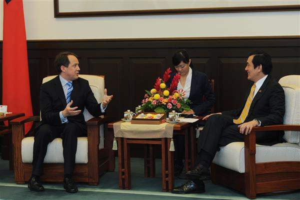 馬英九總統上午接見澳洲臥龍崗大學法學院院長鄧韋克(Warwick Gullett),除歡迎訪賓來訪,並說明我國與日本及菲律賓在解決雙方漁業爭議時所獲致之成果。
