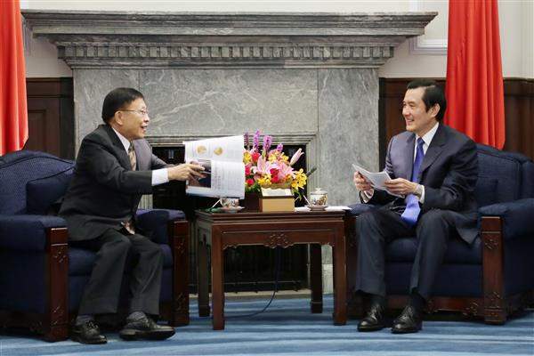在兩岸關係方面,總統向訪賓說明,兩岸目前已達到60年來最穩定與和平的階段,迄今雙方共簽署19項協議,並在許多領域獲致具體成果。談及兩岸經貿發展,總統說,目前《兩岸服務貿易協議》正在立法院審查,希望能加速通過,未來期盼雙方儘速簽訂《兩岸貨品貿易協議》,以加速我融入區域經濟整合。總統也期許透過兩岸互設辦事機構以及通盤檢討修正《兩岸關係條例》等,讓兩岸交流穩定向前邁進,進一步深化及擴大雙方關係。