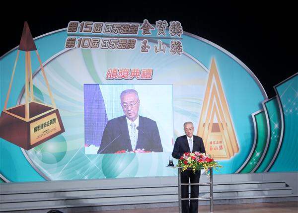 吳敦義副總統晚間出席由「中華民國國家企業競爭力發展協會」所舉辦的「第15屆國家建築金質獎」暨「第10屆國家品質玉山獎」頒獎典禮,除親自頒獎給獲表揚企業廠商代表,並期許企業經營者全面提升產業品牌的競爭力,共同為企業永續發展而努力。