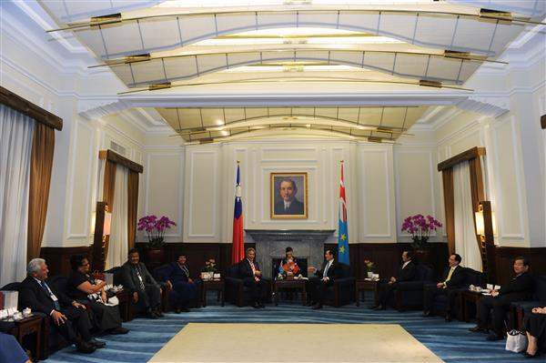 訪賓一行尚包括吐瓦魯外交部長費尼卡索(Taukelina Finikaso)伉儷及財政部長陀阿法(Maatia Toafa)伉儷等,由吐瓦魯駐華大使陶波(Minute Alapati Taupo)及外交部次長石定陪同,前來總統府與總統會晤,總統府秘書長楊進添、國家安全會議諮詢委員甘逸驊及我駐吐瓦魯大使張明伉儷也在座。