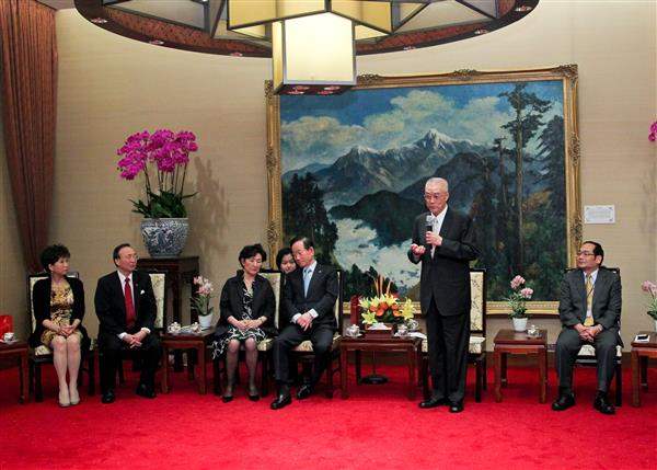 吳敦義副總統上午接見「國際扶輪基金會」李東建主任委員夫婦及各地重要幹部,對訪賓不遺餘力推廣社會公益的傑出貢獻,表達由衷感佩之意。