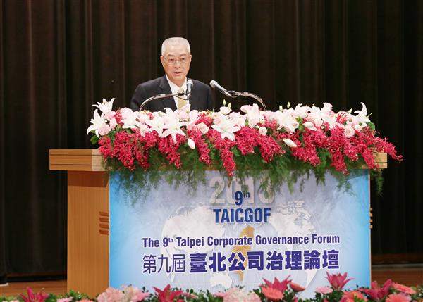 吳敦義副總統上午出席由行政院金融監督管理委員會所舉辦的「第九屆臺北公司治理論壇」開幕典禮,代表政府歡迎來自海內外的專家學者與會,並期盼透過此一論壇集思廣益,為強化與完善我國公司治理制度而努力。